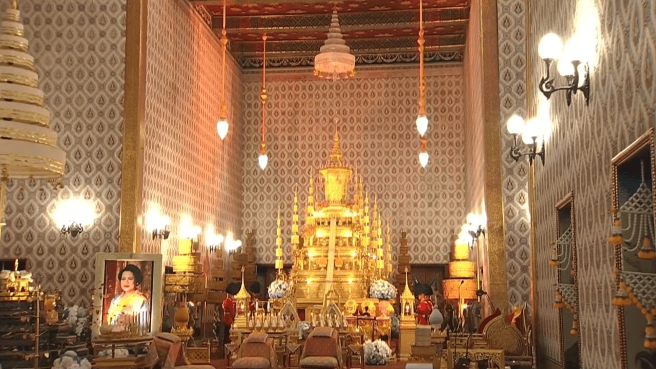 The King and Queen invite the royal corpse of Her Majesty the Queen Mother to be enshrined at Dusit Throne Hall.