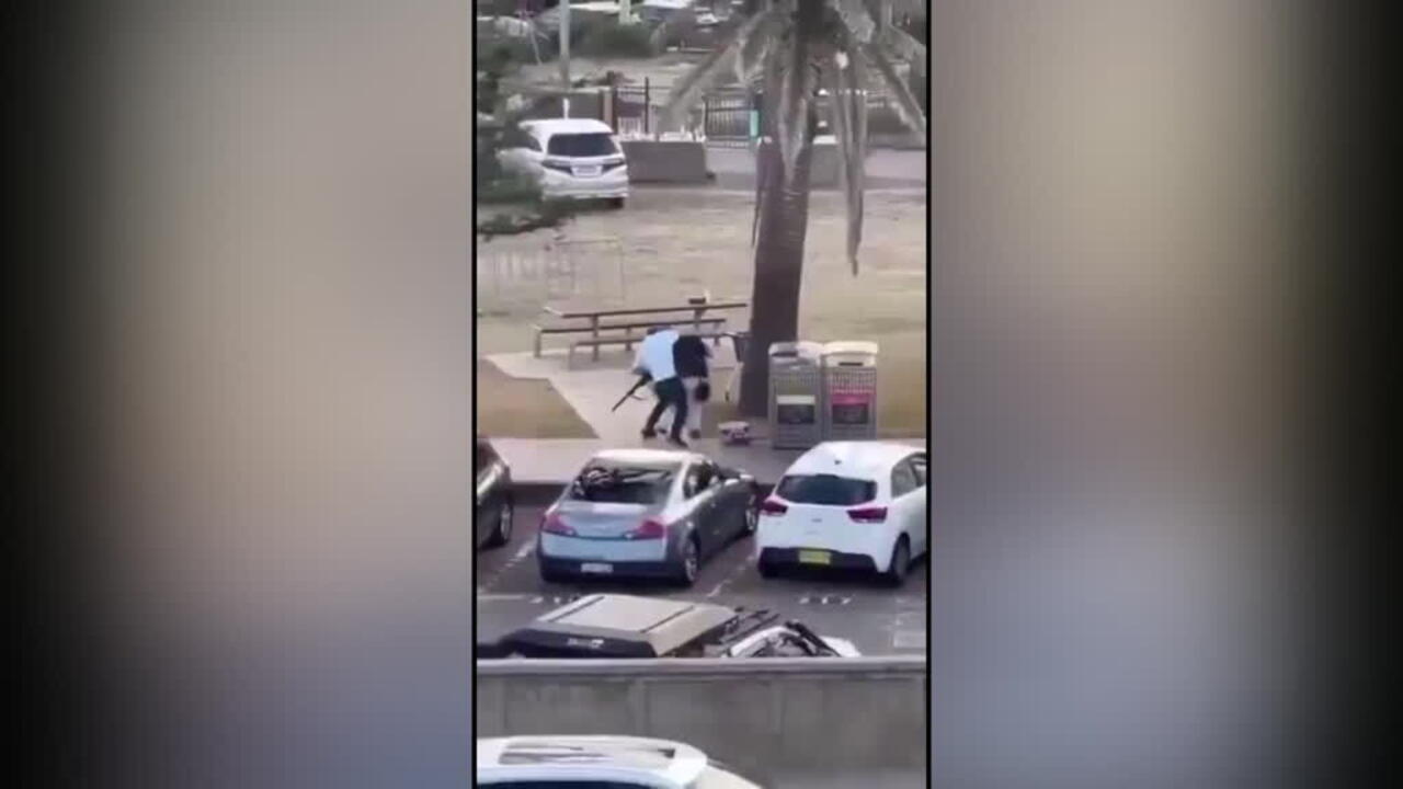 One dramatic clip broadcast on Australian television showed a man appearing to tackle and disarm one gunman, before pointing the man’s weapon at him, then setting the gun on the ground.