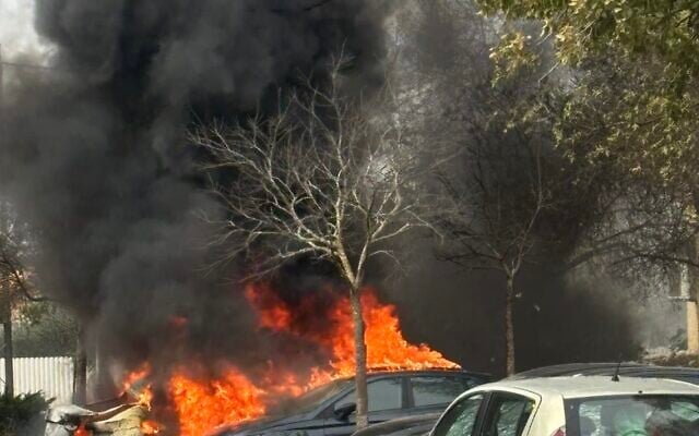 A fire in Avivim, northern Israel, caused by a Hezbollah rocket attack during the 2023-2024 Israel-Hezbollah war. (Courtesy/David Biton)