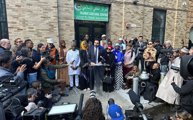 New York City Democratic mayoral candidate Zohran Mamdani speaks at the Islamic Cultural Center of the Bronx mosque in New York, October 24, 2025. (AP Photo/Ted Shaffrey)