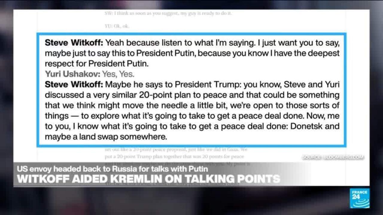 US presidential envoy Steve Witkoff advised a senior Kremlin official on how Vladimir Putin should pitch a Ukraine peace deal to President Donald Trump, according to a transcript of their discussion published Tuesday by Bloomberg.