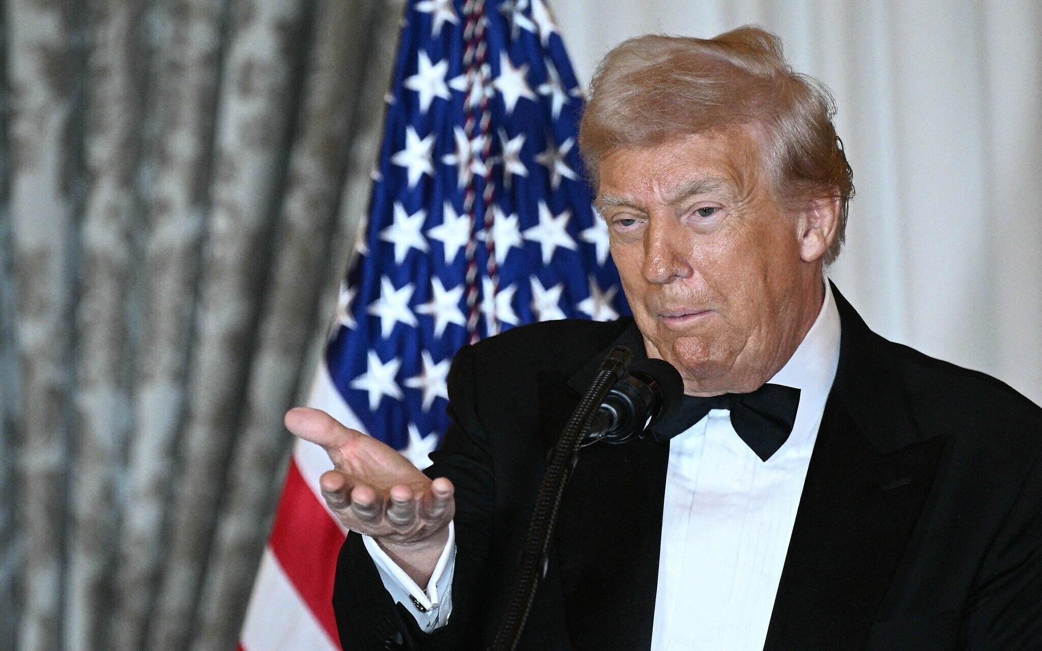 US President Donald Trump speaks during the Kennedy Center Honors dinner ahead of a day before the gala, at the State Department in Washington, DC, December 6, 2025. (Brendan SMIALOWSKI / AFP)