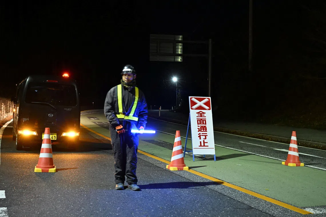 Traffic is restricted on a road following the issuance of a tsunami warning in Rikuzentakata, Iwate Prefecture, Japan, on Dec 9.