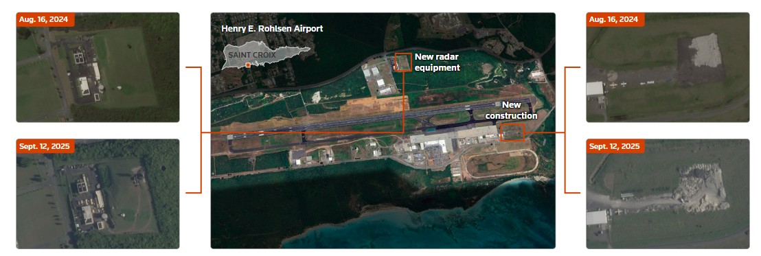 The Haitian embassy did not immediately respond to a request for comment. A video recorded on the island by a local resident at Reuters' request shows a new radar system at Henry E. Rohlsen Airport in St. Croix, U.S. Virgin Islands, on October 30, 2025. Photo distributed by REUTERS.