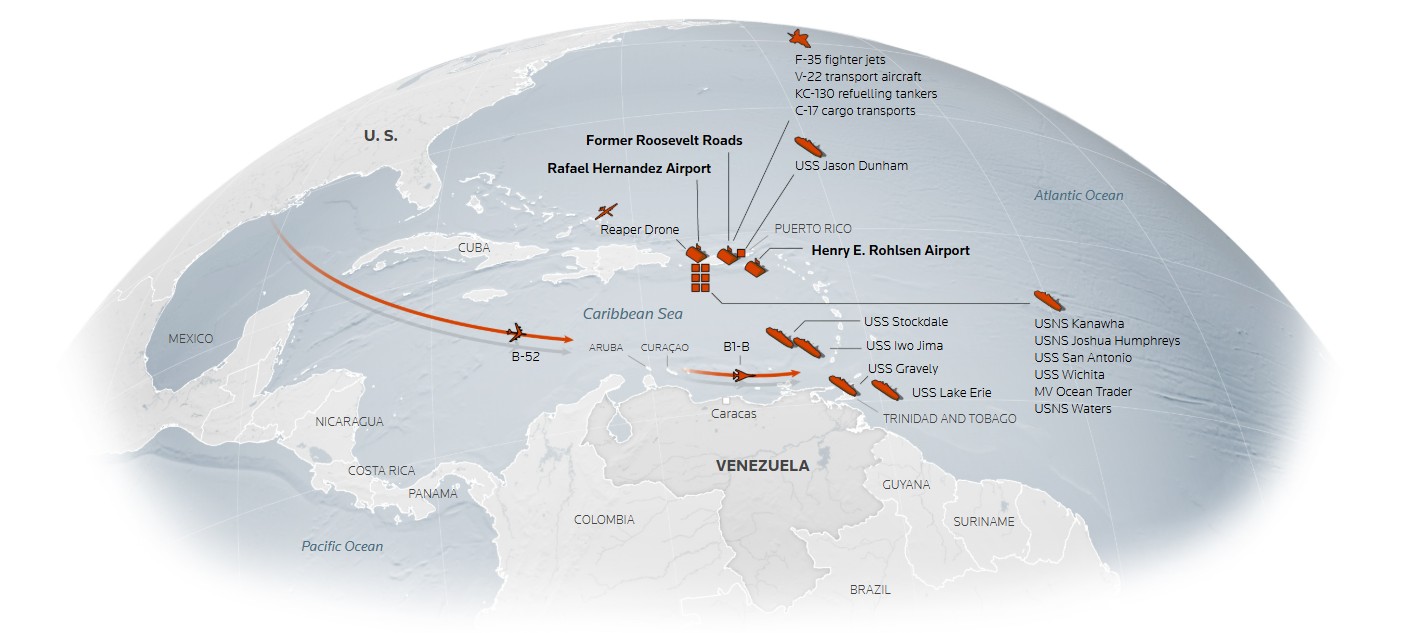 The US military deployment in the Caribbean began in August with the arrival of warships, a nuclear submarine, fighter jets and reconnaissance aircraft.