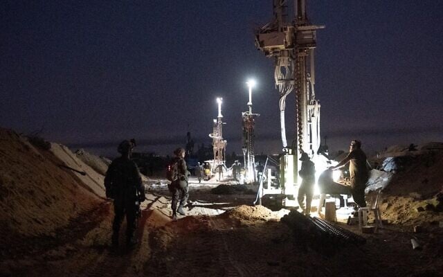 IDF troops work to uncover Hamas tunnels in southern Gaza’s Rafah, in a handout photo issued by the military on November 21, 2025. (Israel Defense Forces)