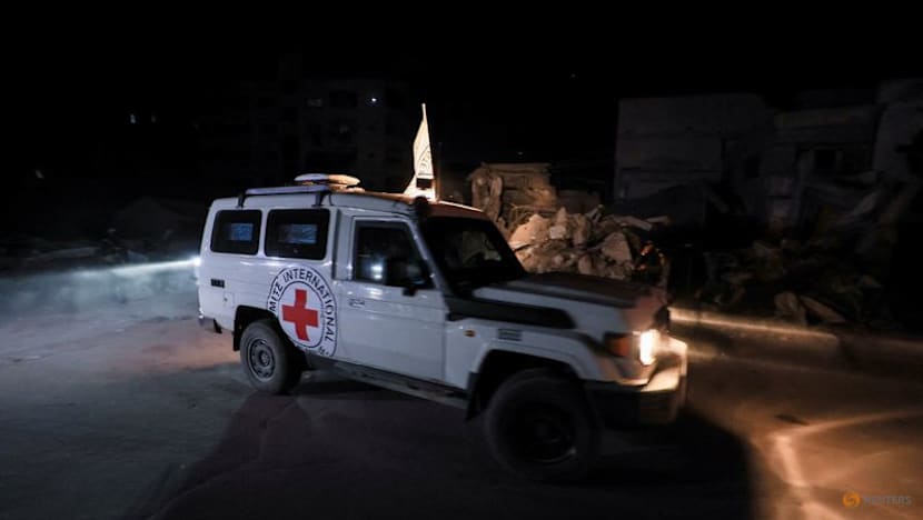 A Red Cross vehicle transports the bodies of hostages who were held in Gaza since the deadly Oct 7, 2023, attack, after they were handed over by Hamas militants as part of a ceasefire and a hostage-prisoner swap deal between Hamas and Israel, in Gaza City, on Oct 15, 2025. (Photo: REUTERS/Dawoud Abu Alkas)